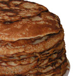 Blueberry buttermilk pancakes drenched in maple sytrup & pecans.